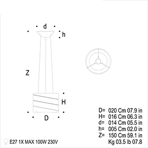 Ø 20 cm, højde 15,5 cm, stelfarve poleret krom, lyskilde 1 x 100W E27 230V
