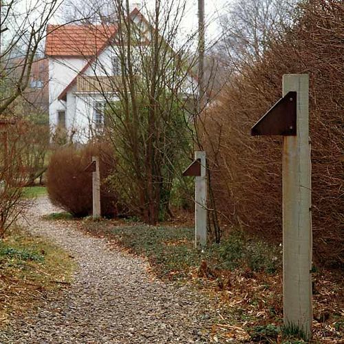 Udendørs lampe, der lyser fremad foran sig i et rektangel svarende til stien eller flisegang. En lidt "rå" lampe med et sofistekeret asymetrisk lys.