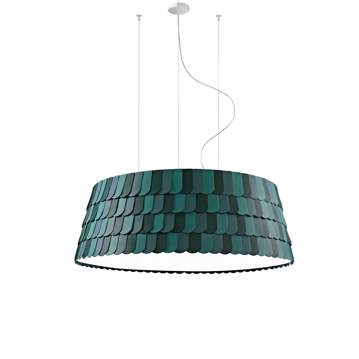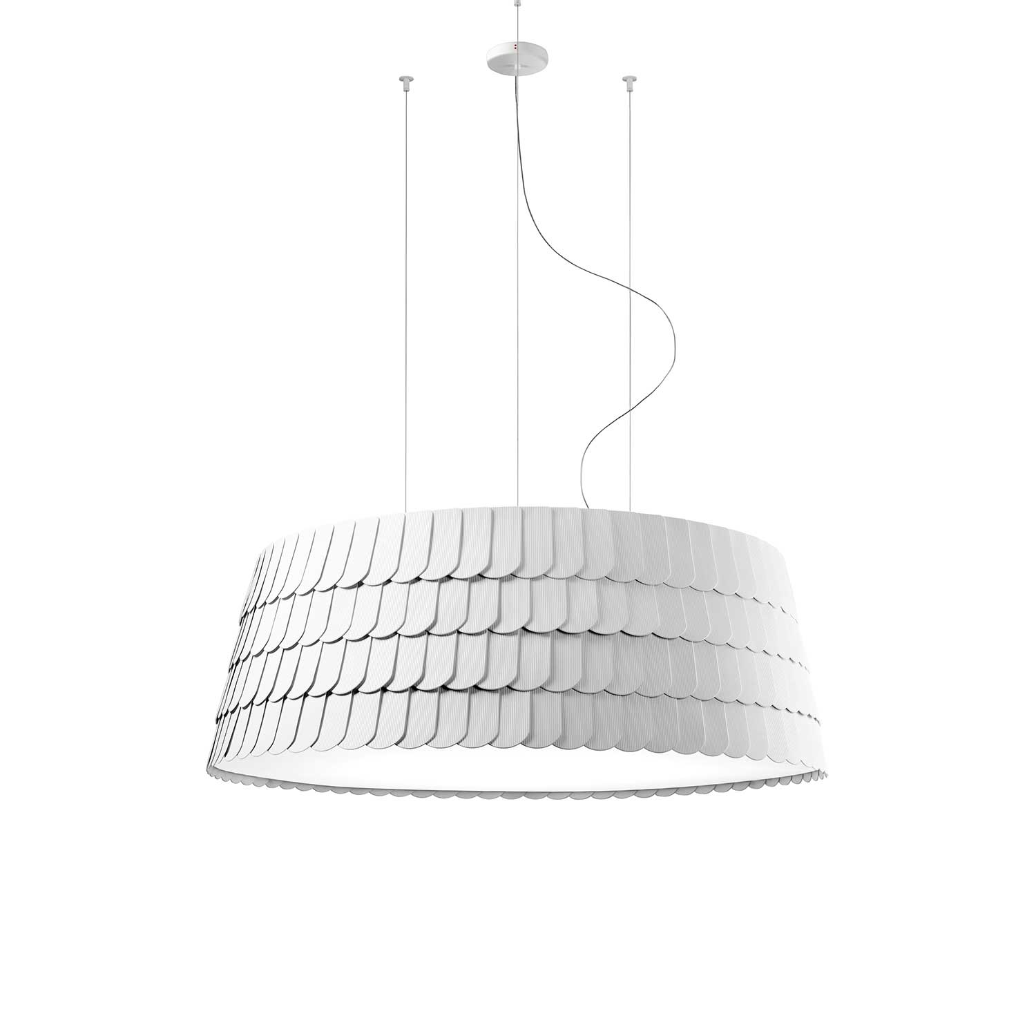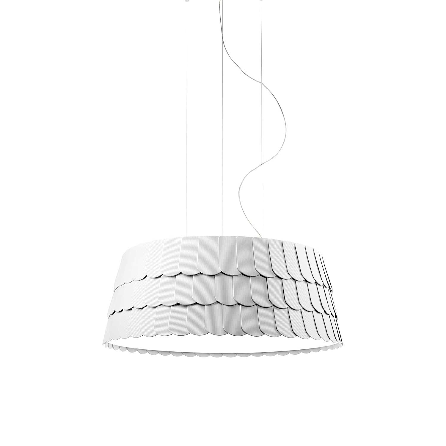 Den unge designer Benjamin Hubert, blev inspireret af hustage, og skabte den sjove pendel i farverne hvid, antracit, orange og grøn.