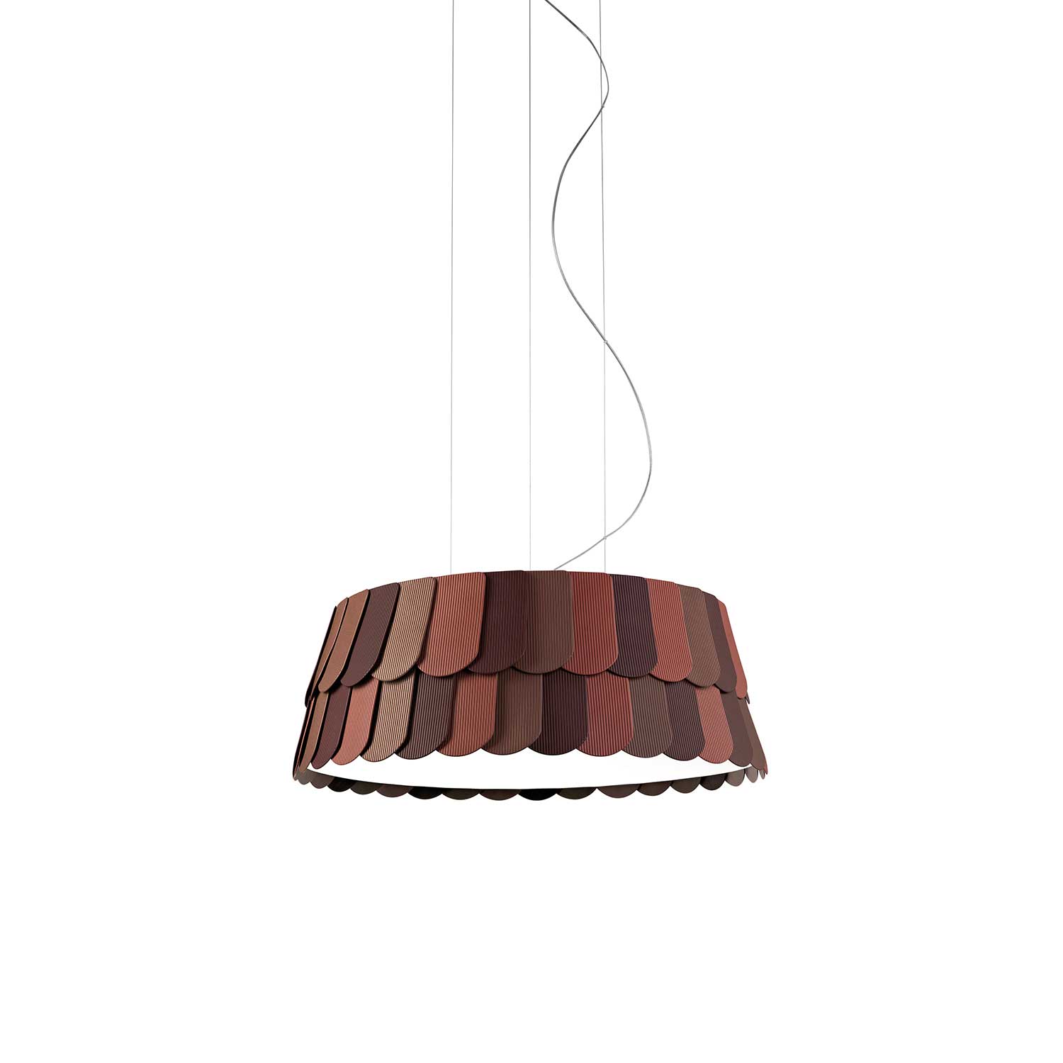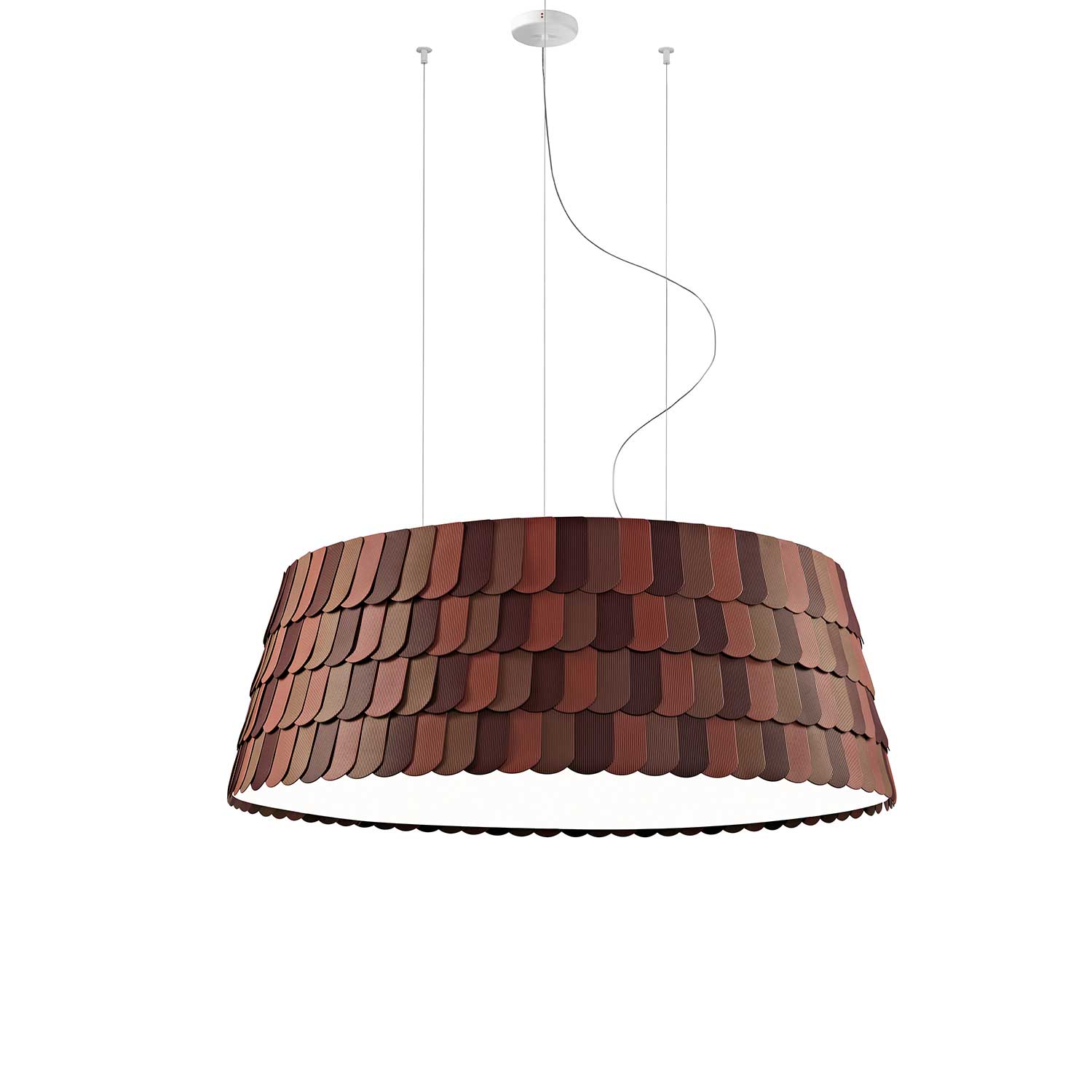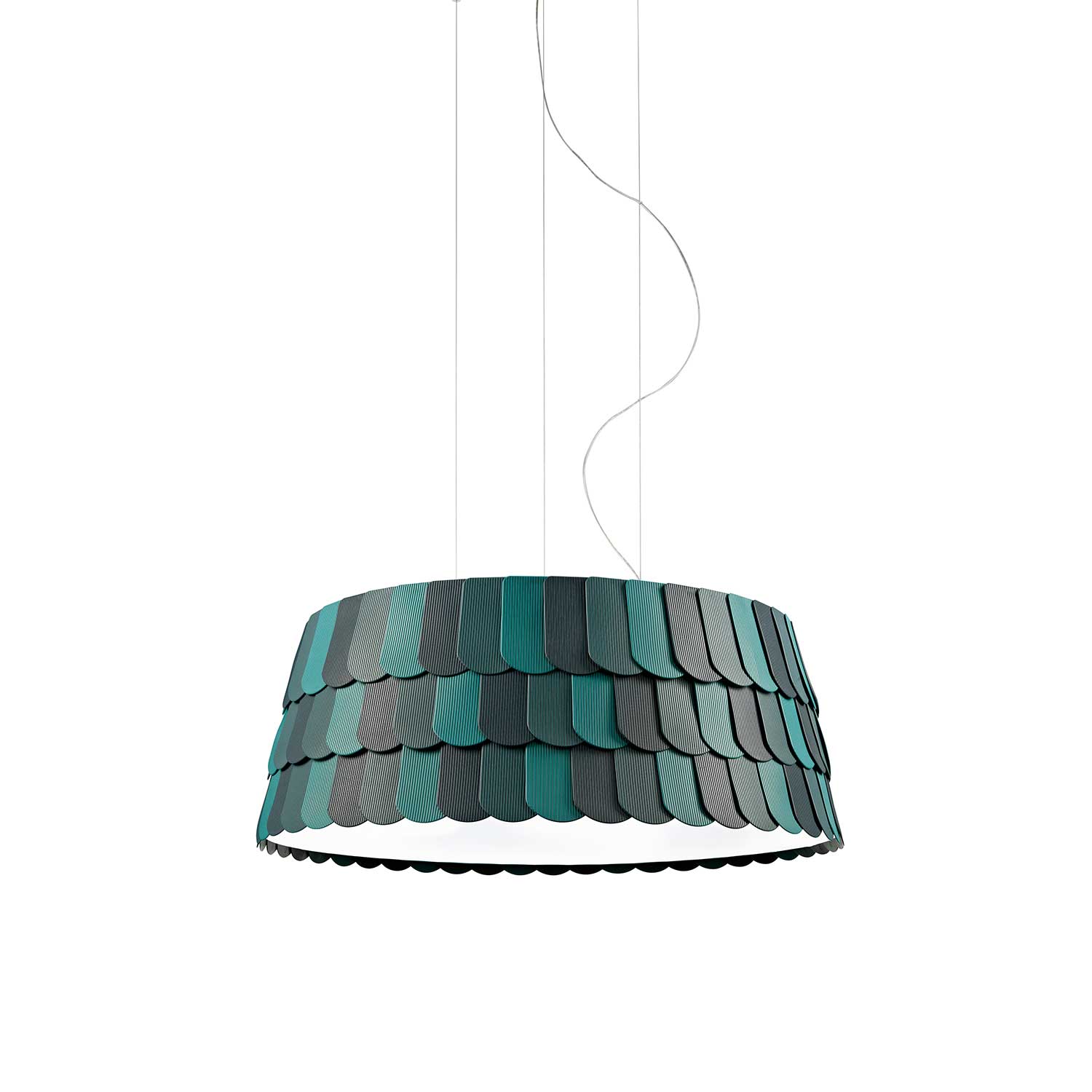 Den unge designer Benjamin Hubert, blev inspireret af hustage, og skabte den sjove pendel i farverne hvid, antracit, orange og grøn.