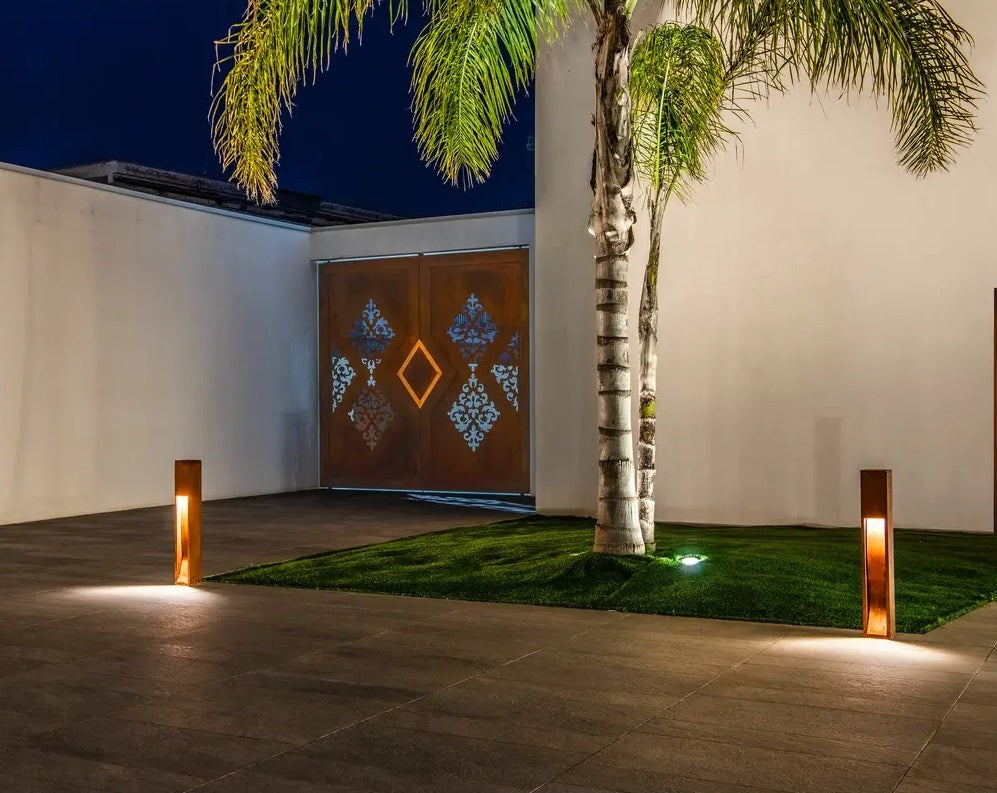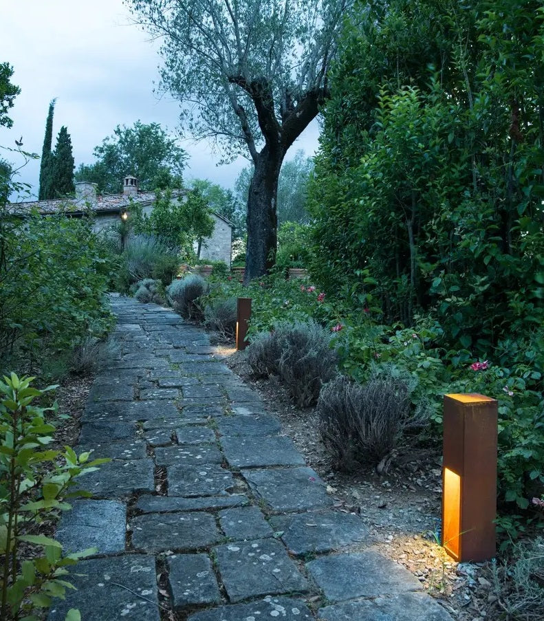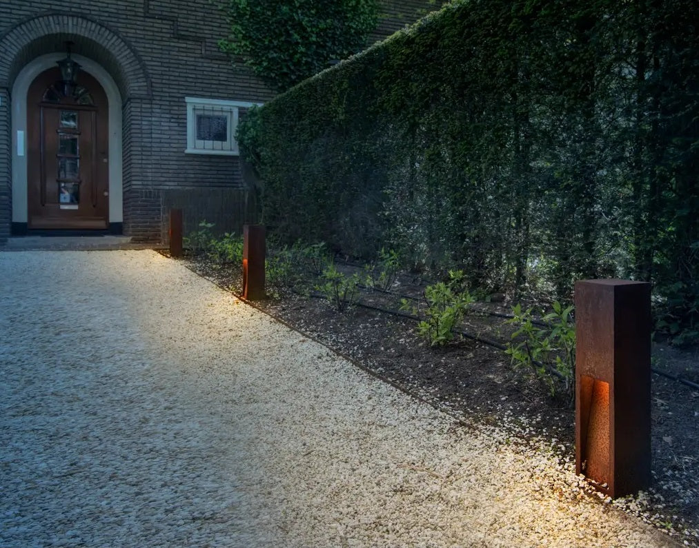 Rusty slot er fra en serie af lampe lavet i jern hvor en rusten er sat i gang på materialet og stoppet igen så overfladen er som rustet jern. Pullerten fås i 50 eller 80 cm højde. Hver lampe er unik og har sin egen overflade. Som tilbehør fås spyd til nedstøbning. Rusty slot lamperne har et højt kobber indhold, som forhindre at rusten ikke ryger af i flager, men gør at de har en lang holdbarhed på op til 70 år. De har en meget naturligt look og falder flot ind i naturen. Lyset er flot nedadrettet uden at blænde. Rusty Slot 50 og 80 fås nu også med integreret 8,6W LED.