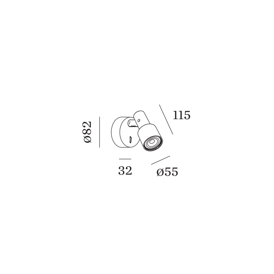 Lampens baldakin/ base Ø 82 mm så den kan dække for en vægdåse.