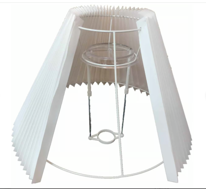 Så den passer det til stort set alle lampeskærme med bærering (en bærering er en ca. 10 cm ring som er monteret inden i skærmen) således at skærmstativet holder lampeskærmen.