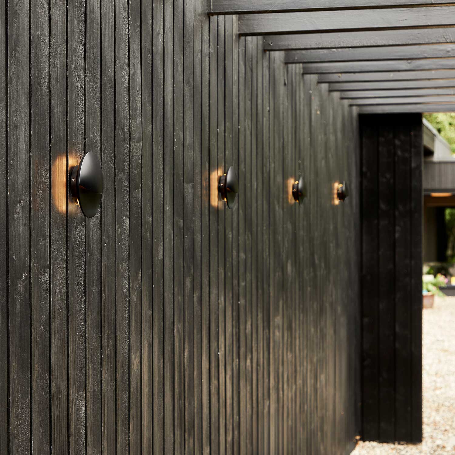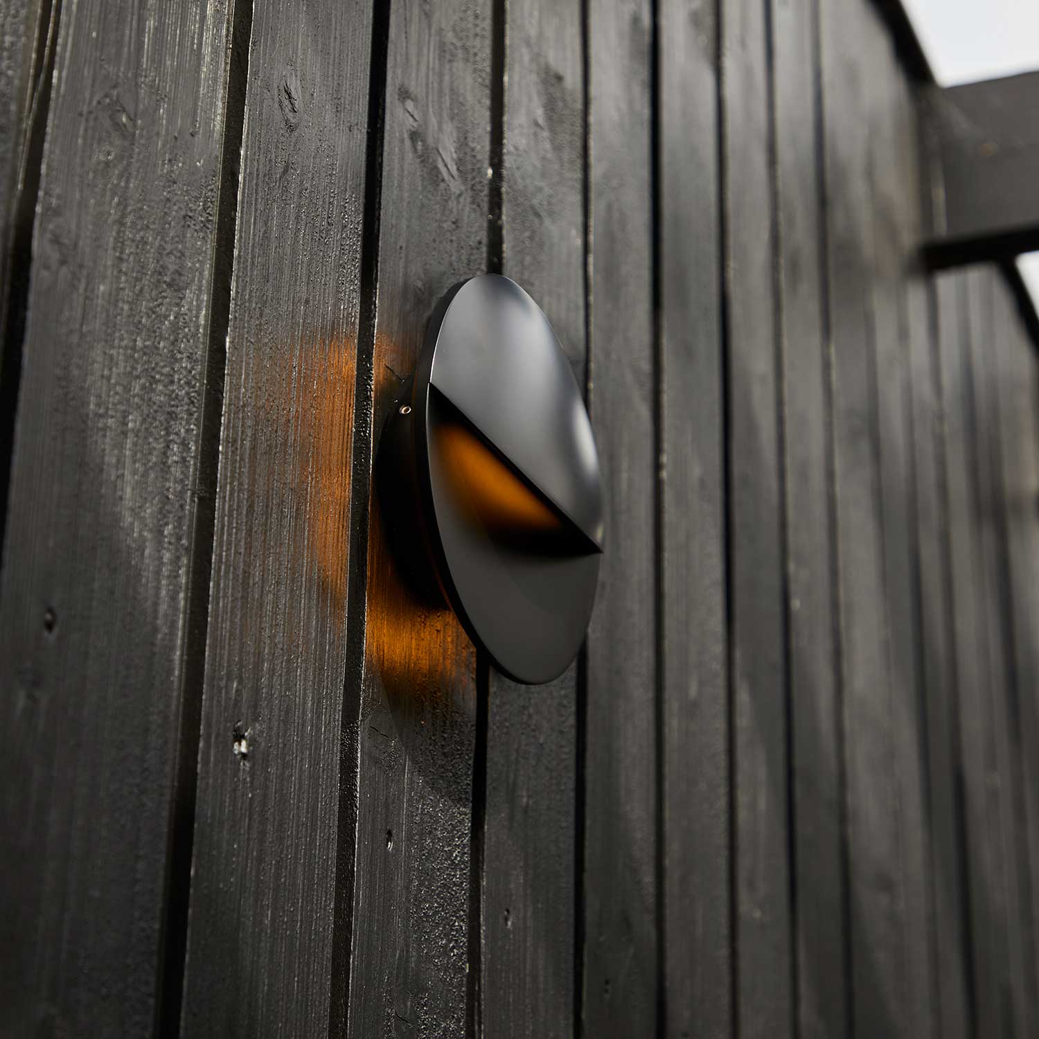 Denne funktion tilfører dybde og stemning til området omkring lampen, og gør den ideel til anvendelse ved indgangspartier, langs facader eller på terrassen, hvor den skaber en hyggelig og varm belysning.