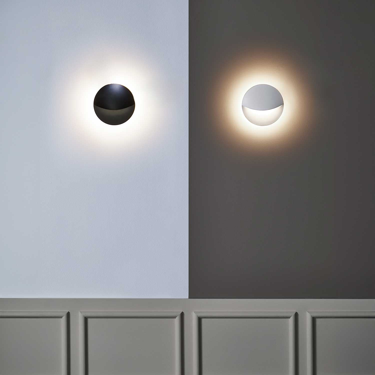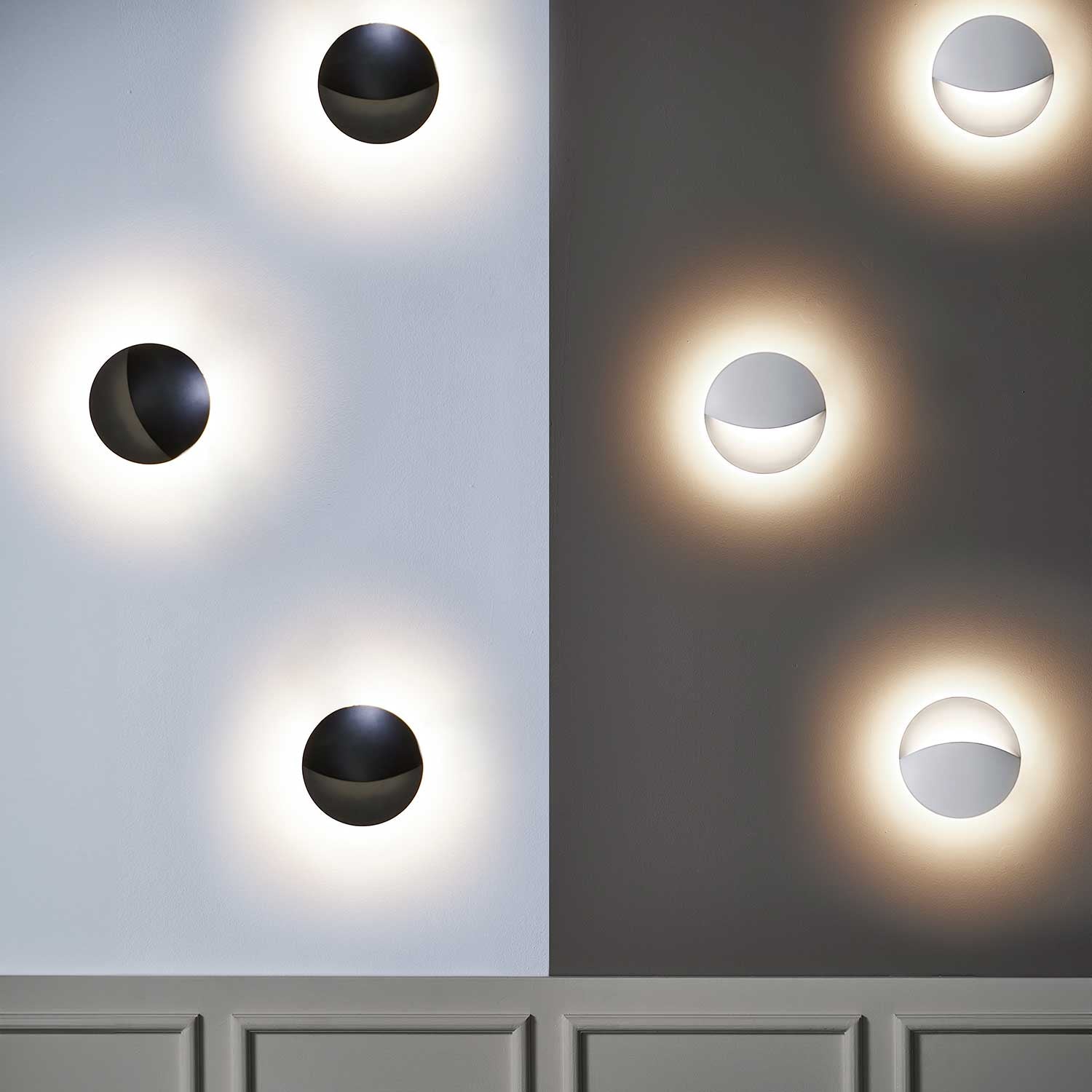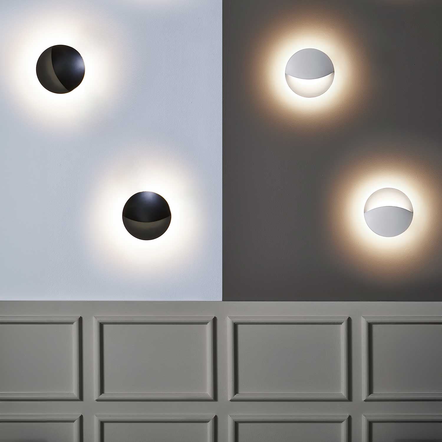 Smiley væglampe bringer et moderne og elegant udtryk til hjemmet. Med den matte sorte eller hvide finish og robuste aluminiumsstrukturer skaber lampen et sofistikeret look, der tilføjer karakter til både indendørs og udendørs miljøer.