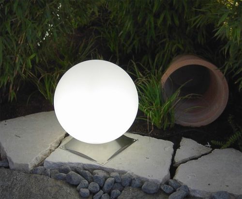 Snowball med Rustfrit stål fod med et gummi-stik, fleksibel anvendelse i haven, blank overflade, med 5 m kabel, andre kabellængder på anmodning. Fås i størrelser: 300mm, 400mm, 500mm, 600mm. Materiale: Polyethylen, formstabilt og robust, UV resistent og temperaturen stabil fra -40 ° C til +80 ° C