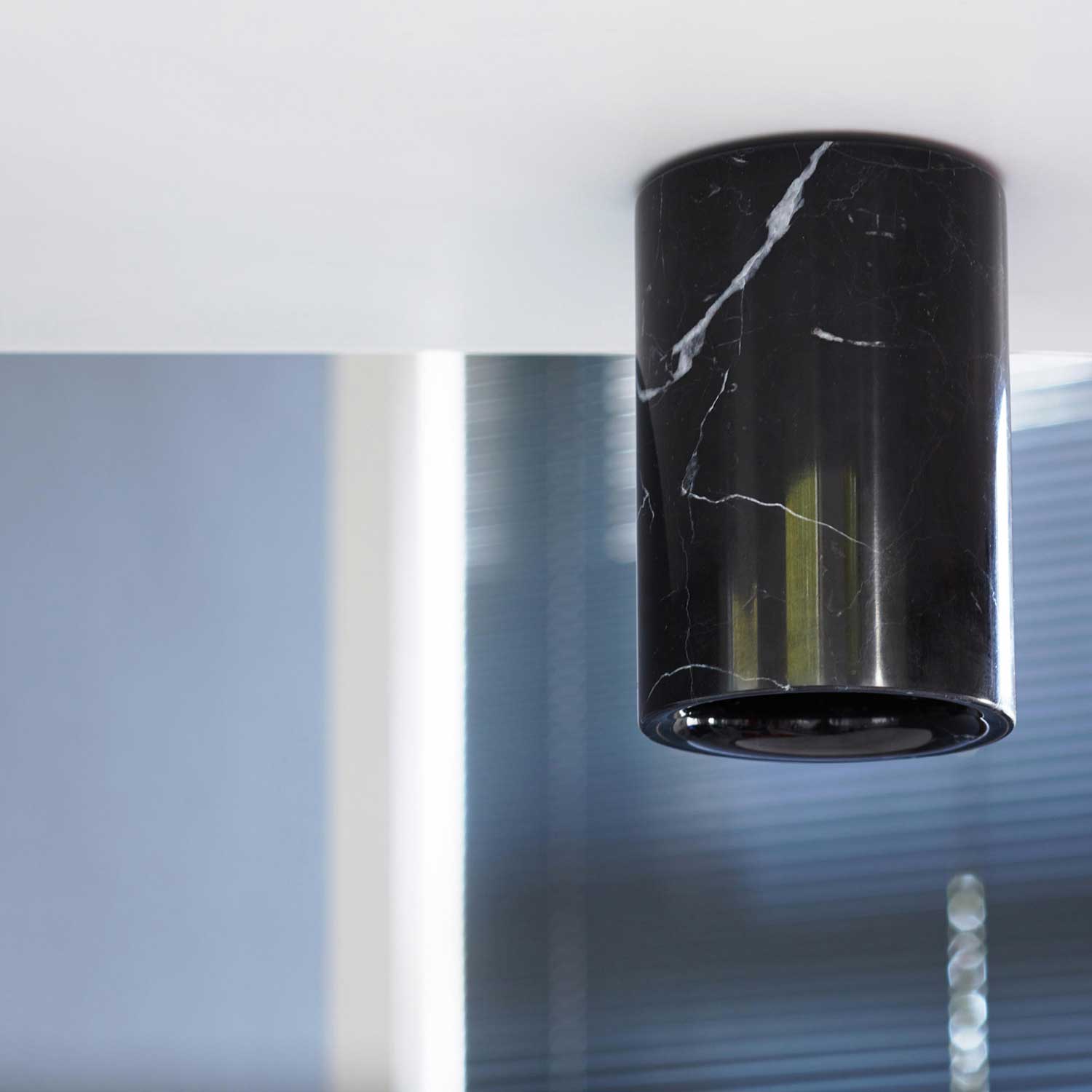 Solid spot cylinder fra Trence Woodgate en minimalistisk spot klædt på i marmor eller træ. Der er sort eller hvid marmor og i træ fås den i walnøddetræ som er lidt varmt eller egetræ lidt lysere træsort eller en sortbejdset egetræ version.