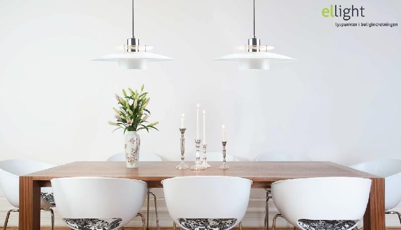 Pendlen fås i hvid/krom, sort/krom, sort/kobber eller sort/messing.