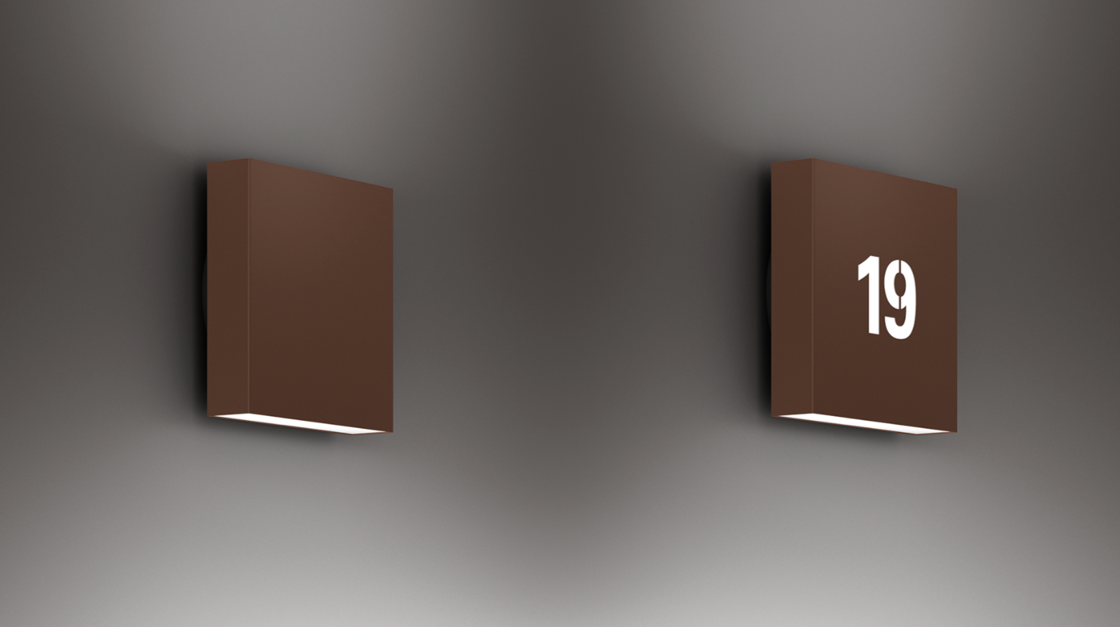 Der kan også laserskæres husnummer i lampen for en pris på 1038,- ( se billede med størrelser og muligheder og skriv eller ring til os for hvilken løsning du ønsker) 8 ugers levering.