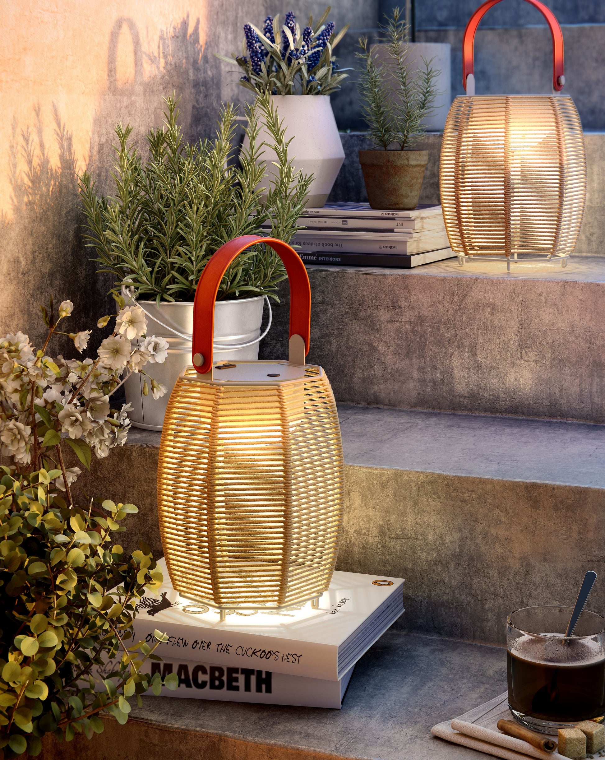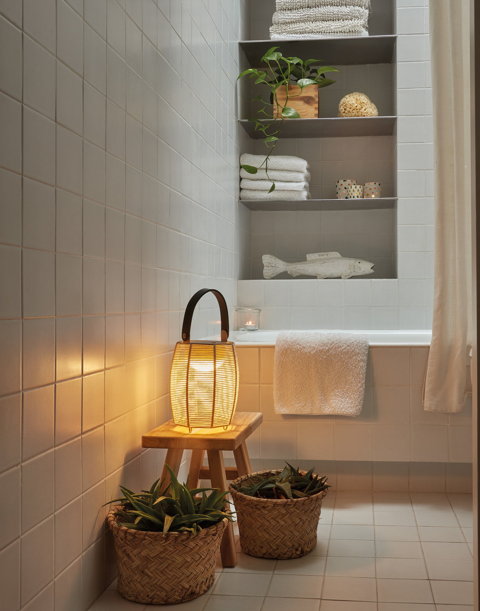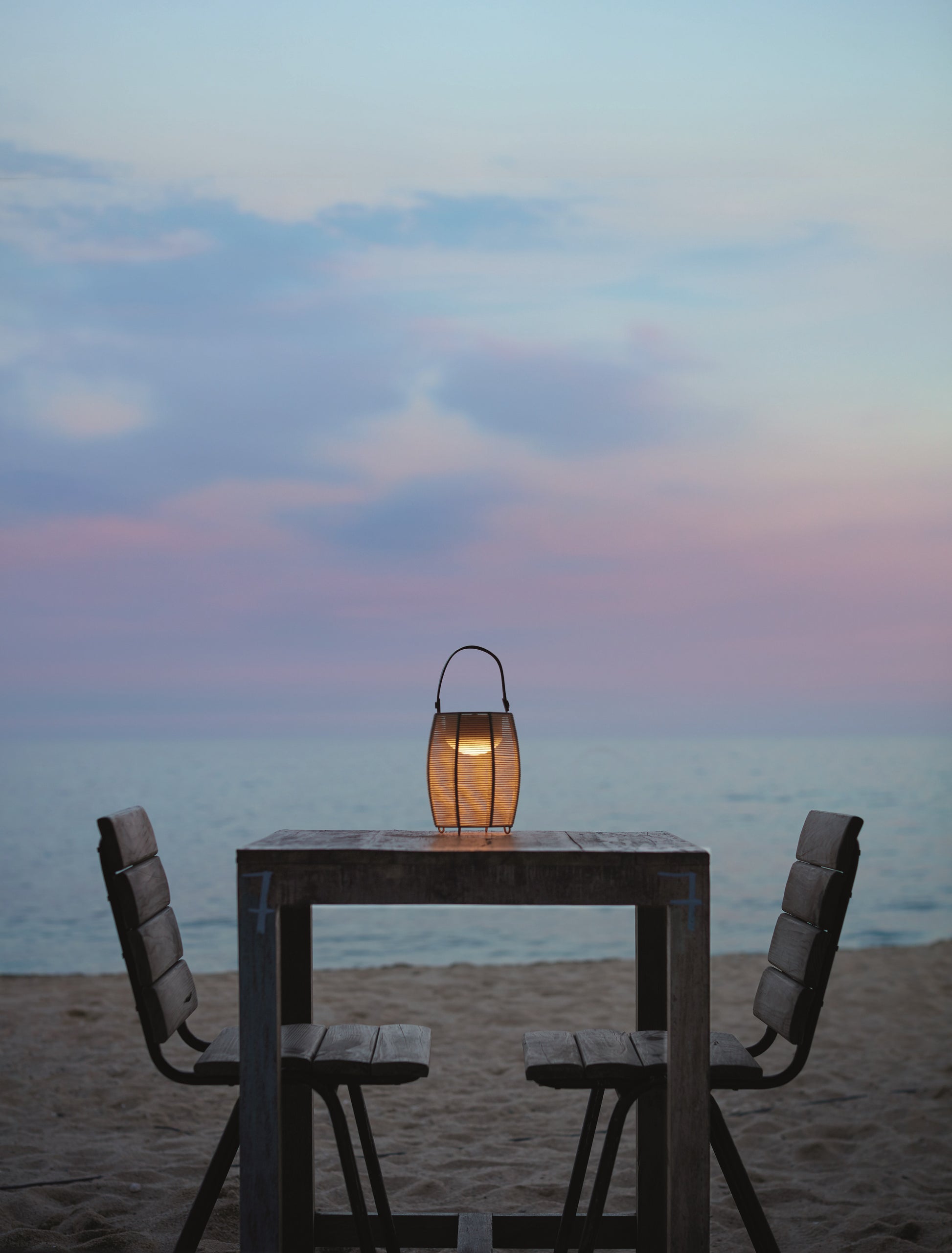 Tanit er en bærbar og genopladelig lampe med et blødt diffust lys gennem en skærm som er vævet i hånden med bomuldsgarn.