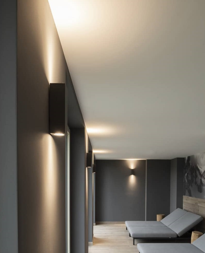 Væglampen er til indendørs brug, og er lavet af aluminium. Lyser op og ned ved 2 x GU10 pære (ikke inkl.)