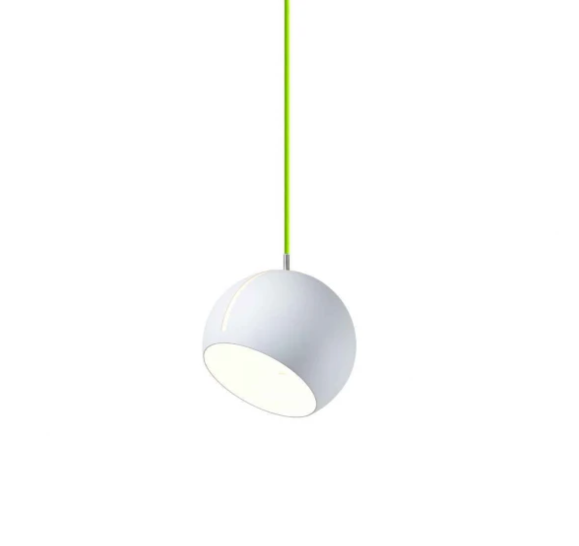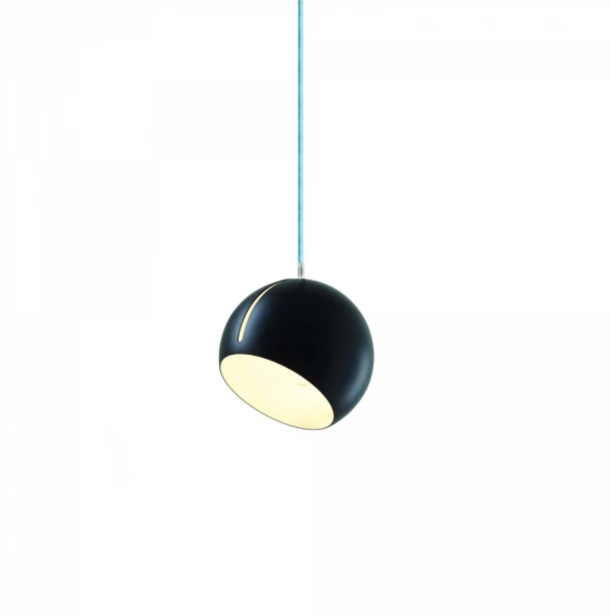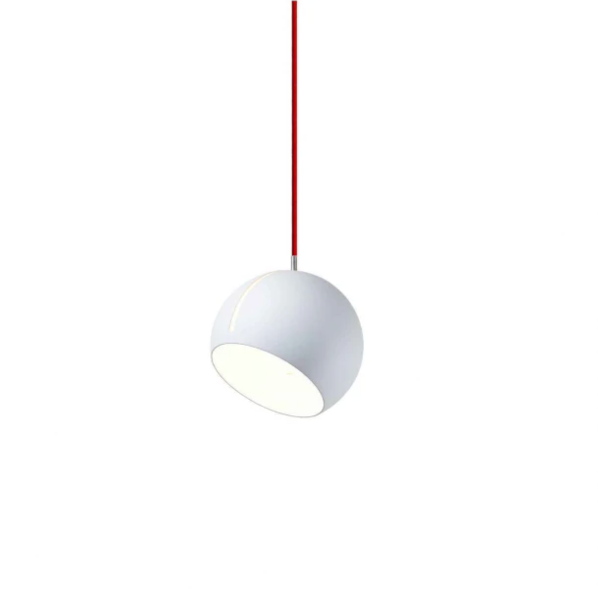 Tilt Globe pendlen fås i tre forskellige farver: Hvid, grå eller sort, hvor disse kan vælges med en hvid, grå, sort, beige, lyserød, rød, blå eller grøn ledning.