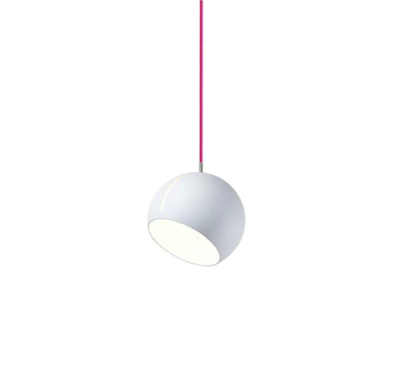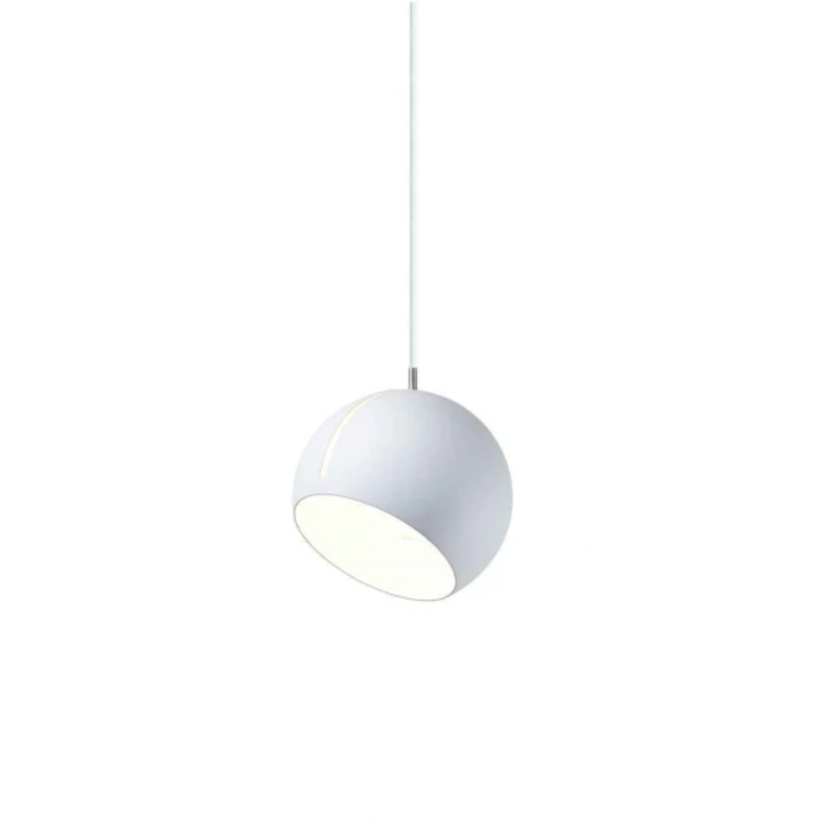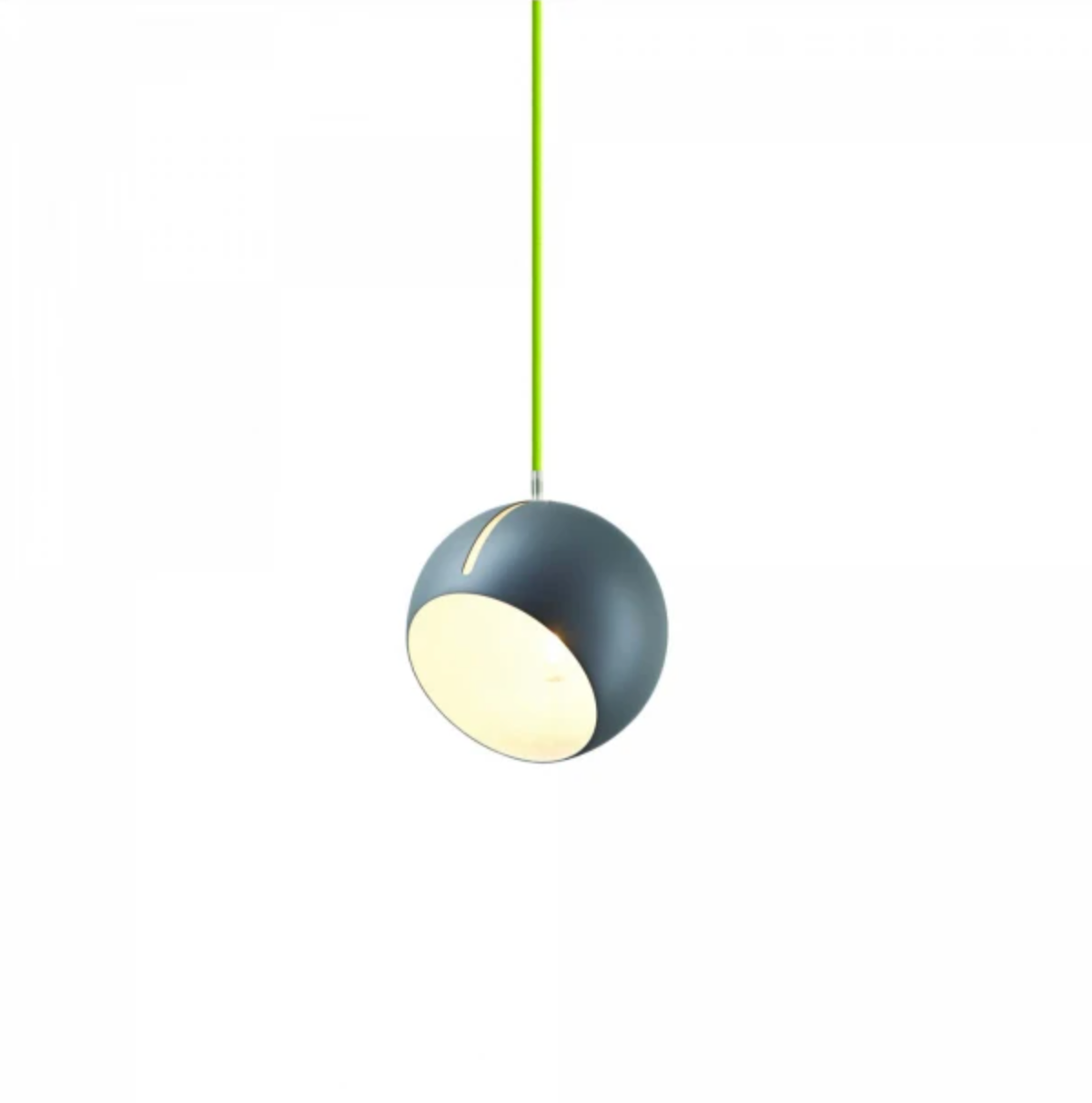Tilt Globe pendlen fås i tre forskellige farver: Hvid, grå eller sort, hvor disse kan vælges med en hvid, grå, sort, beige, lyserød, rød, blå eller grøn ledning.
