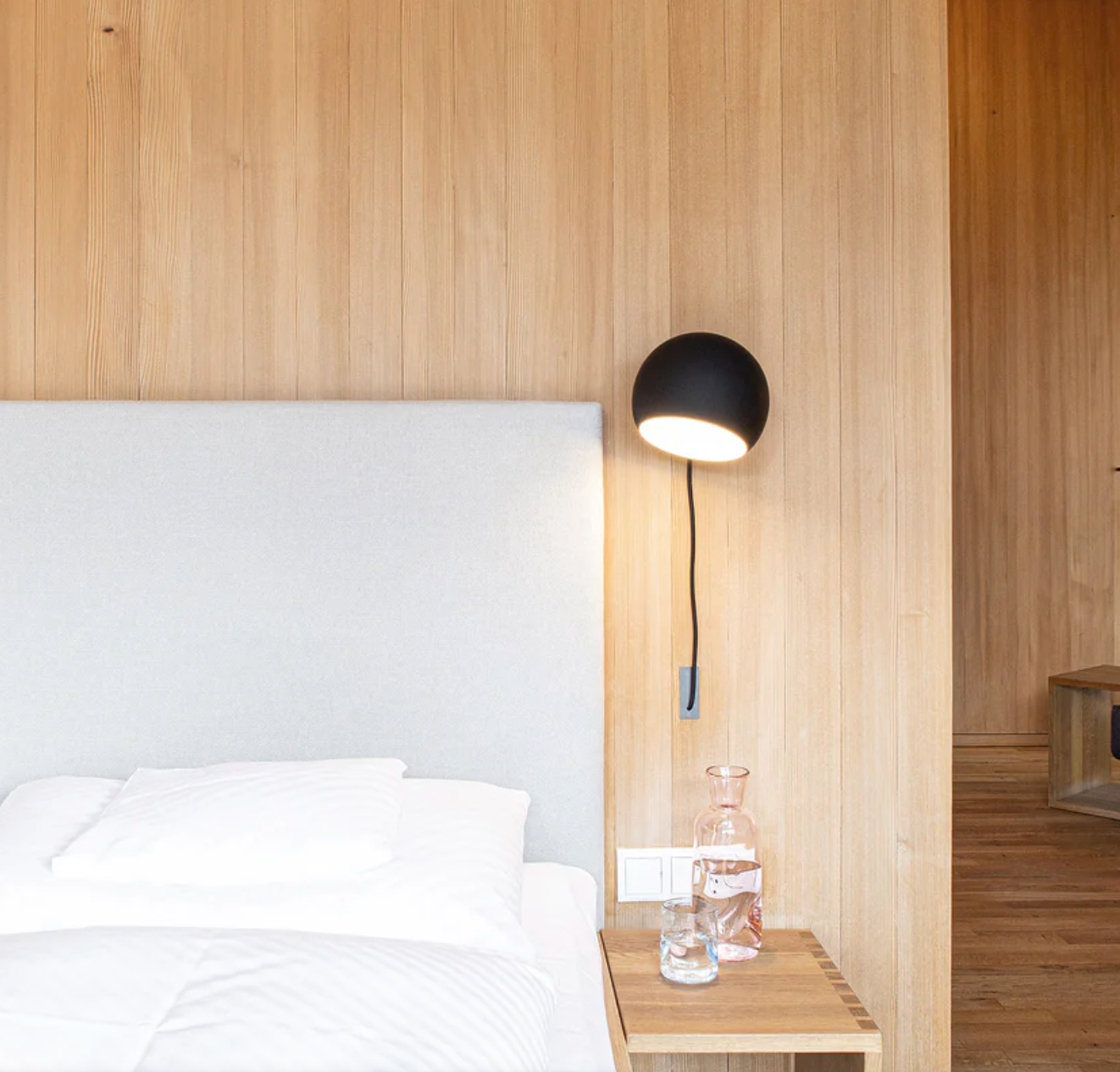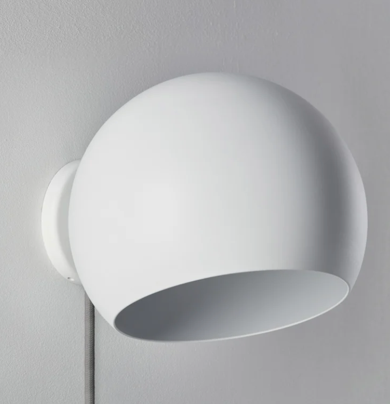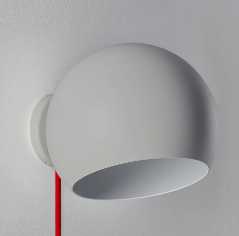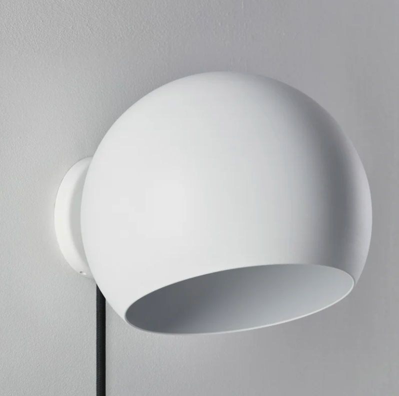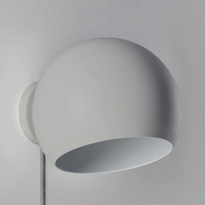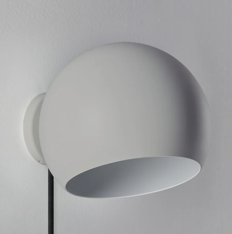 Tilt Globe Short væglampen fås i farverne: Hvid, grå eller sort, hvor den fås enten med eller uden ledning og med afbryder.