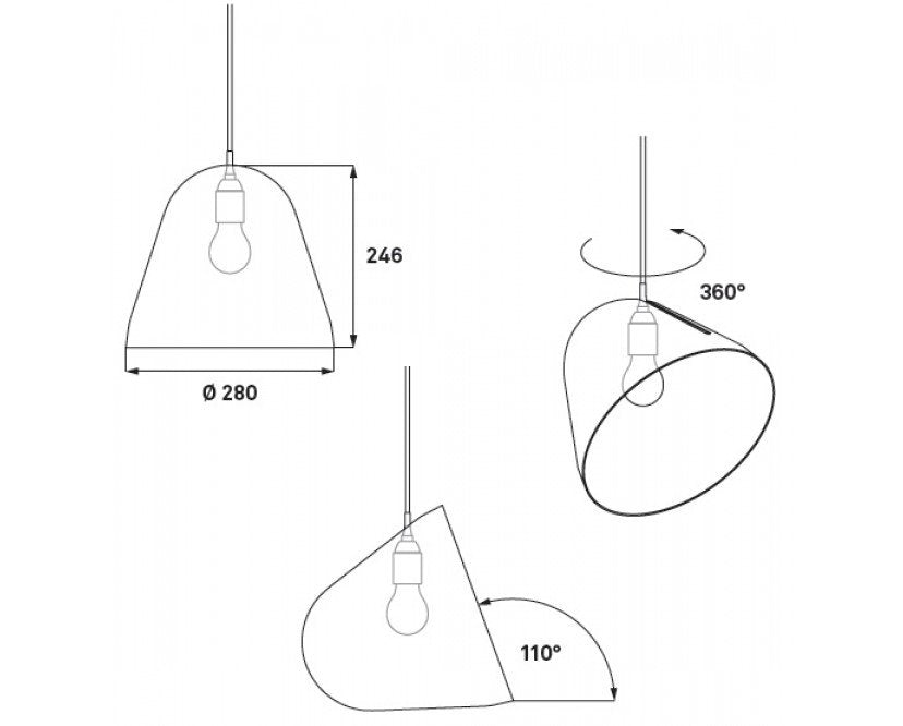 Tilt pendlen fås i to forskellige størrelser, og i tre forskellige farver, mens ledningen fås i otte forskellige farver.