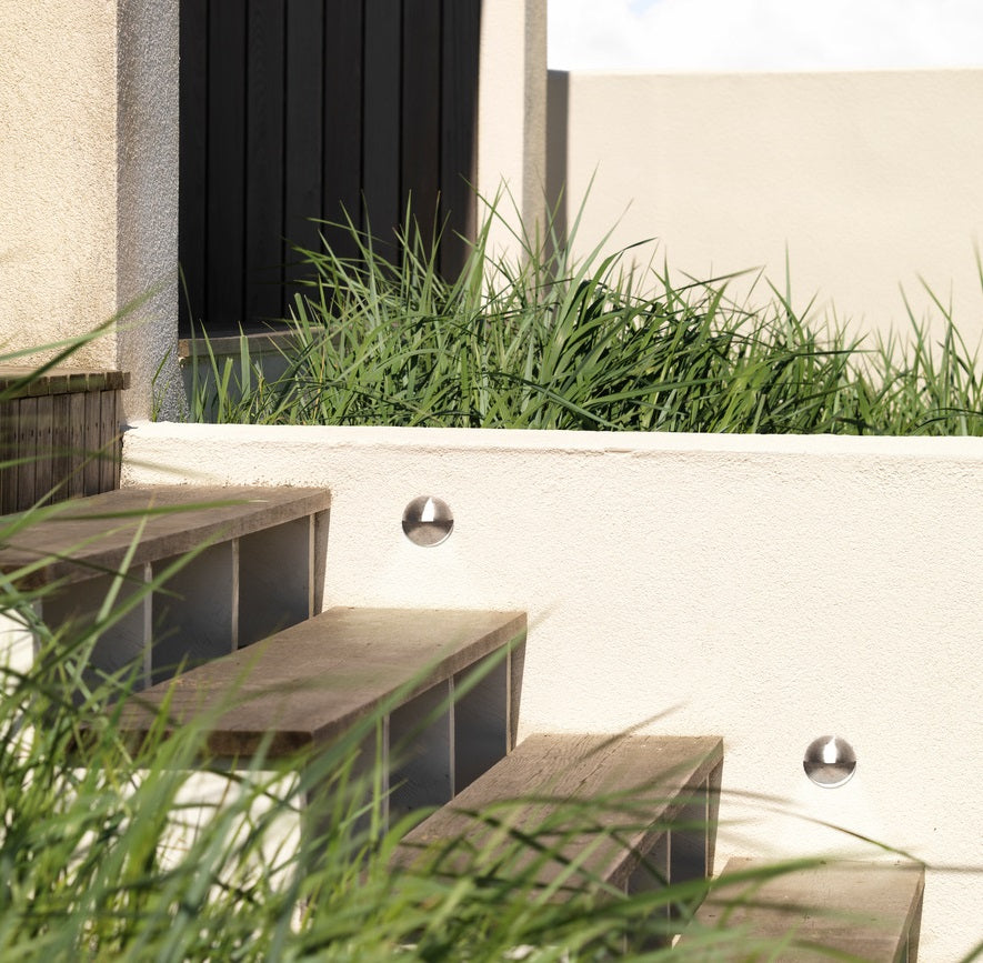 En udendørs kvadratisk væglampe, der er bestående af metal.
