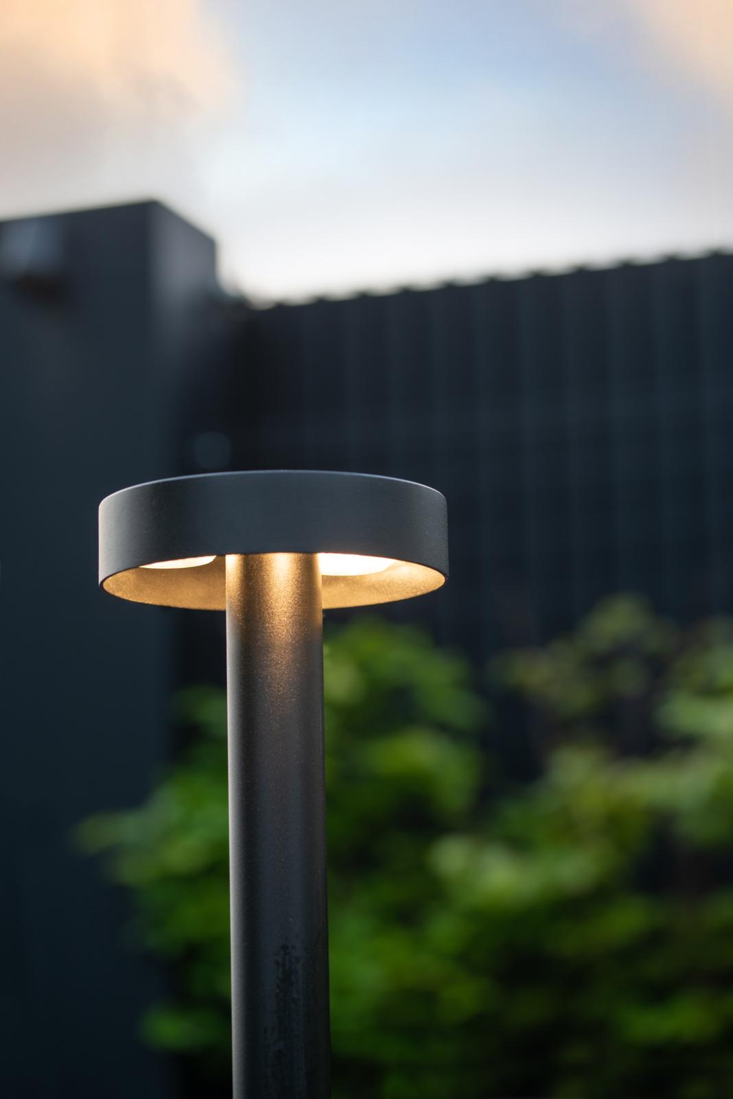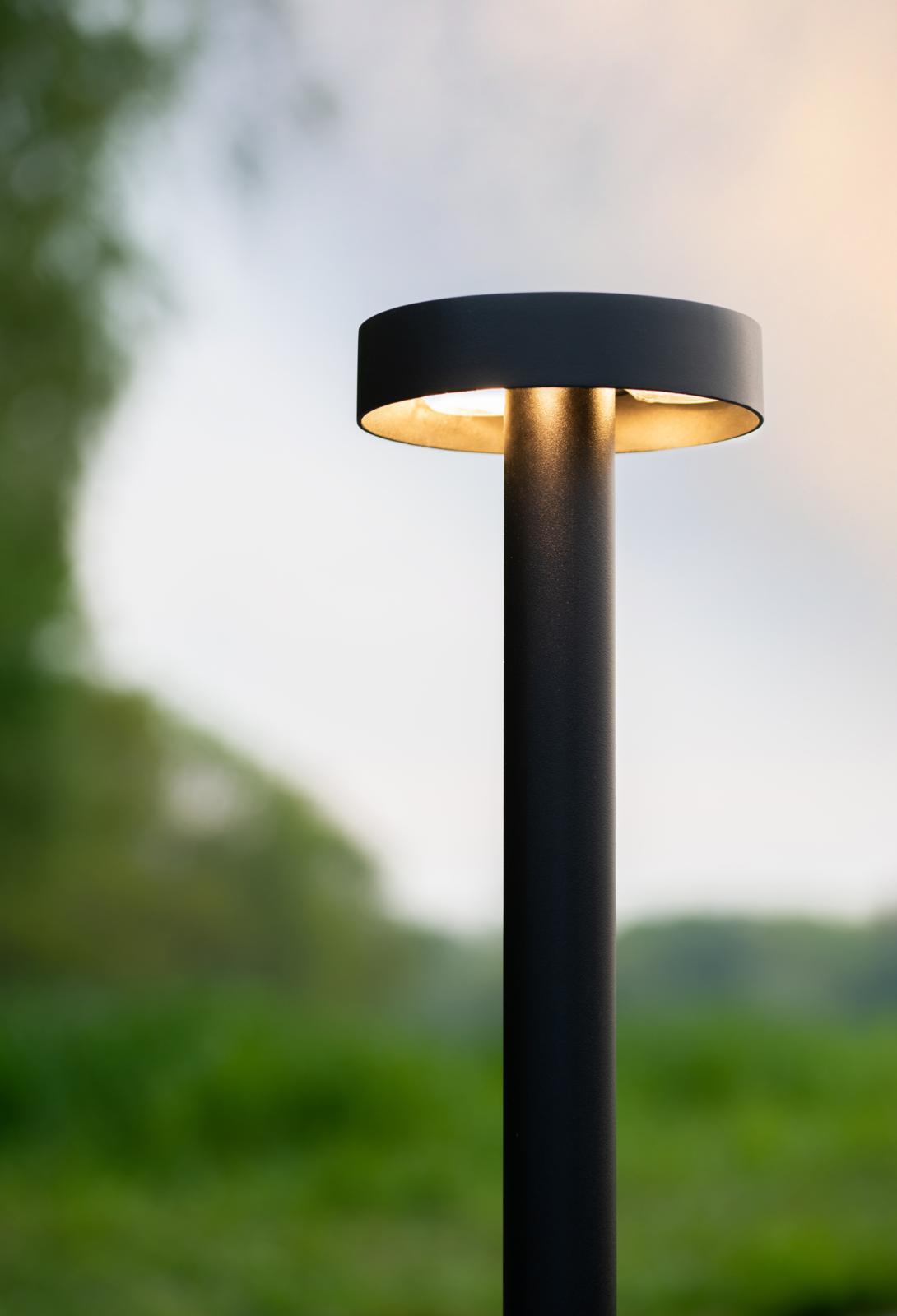 Lakeret aluminium pullert med integreret LED til at give diffust lys nedad