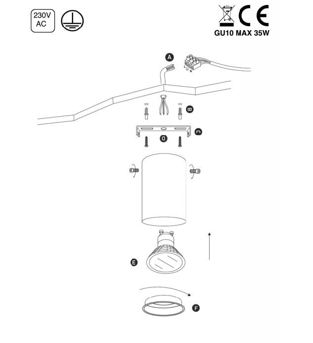 Lyskilde: GU10 max. 1 x 35W ( her kan med fordel bruges retrofit LED)