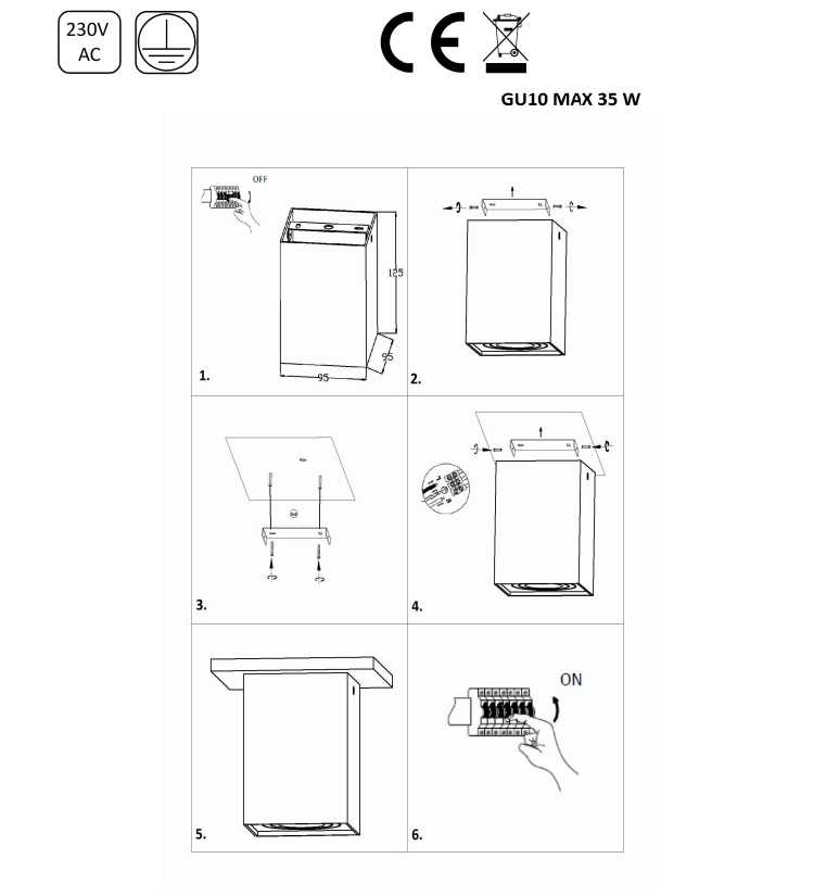 Lyskilde: GU10 max. 1 x 35W ( her kan med fordel bruges retrofit LED)