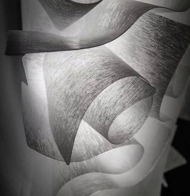 Ophængets røde, indpakkede kabel øger de håndlavede lampers modernitet, og tager et stykke tid fra Haute couture-verdenen.