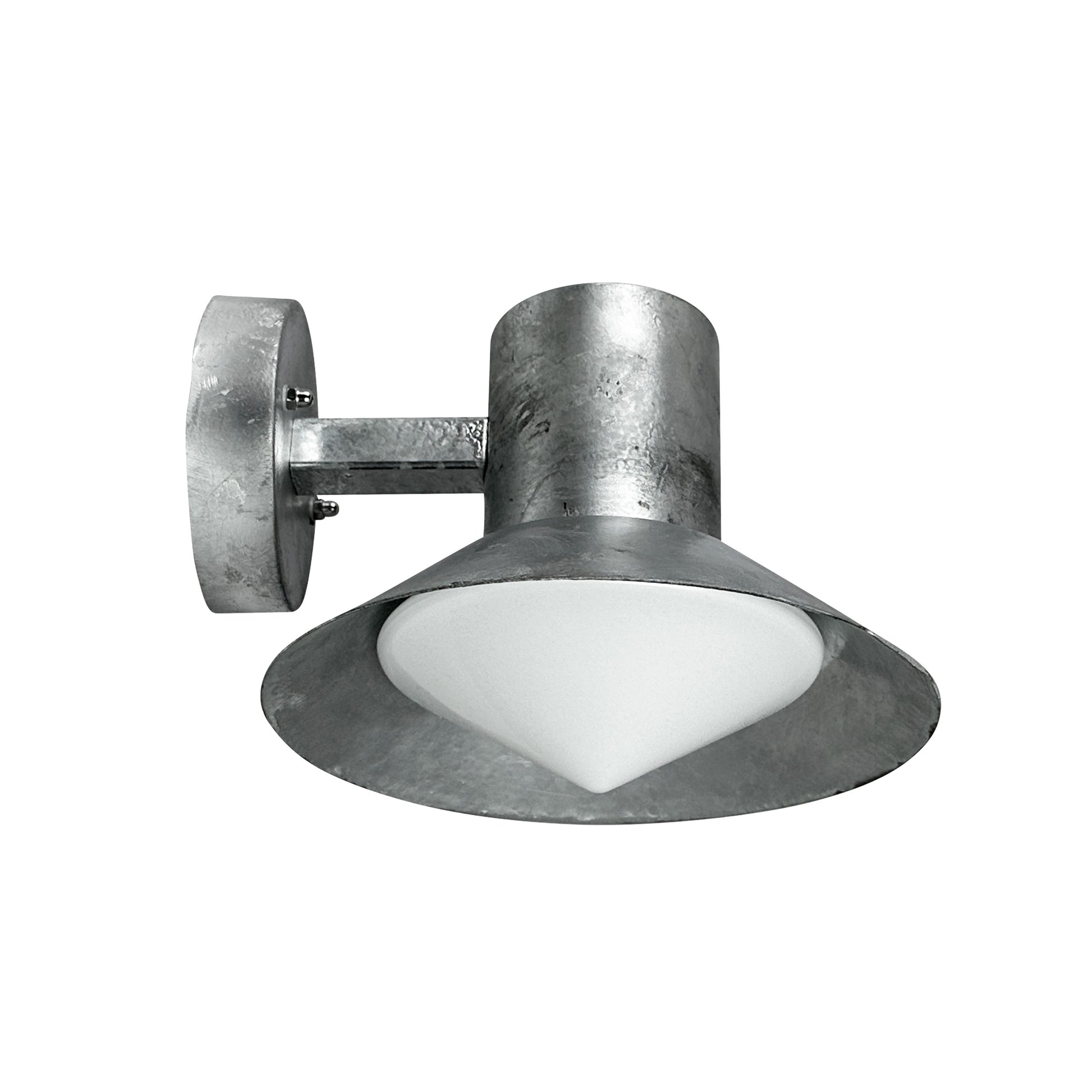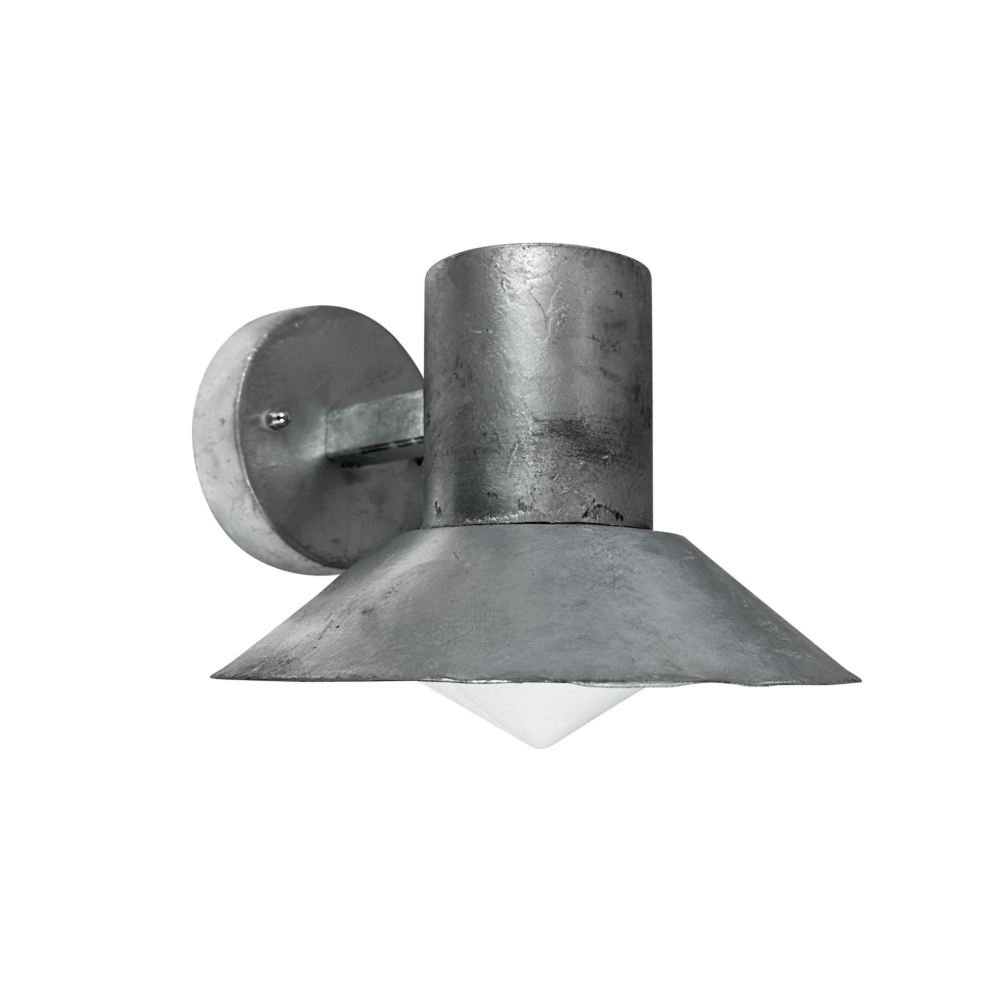 Med en IP44-klassificering er lampen modstandsdygtig over for vind og vejr, hvilket sikrer lang holdbarhed og pålidelig ydeevne i det nordiske klima. Det elegante lampehoved i opalglas spreder et blødt og behageligt lys, mens den galvaniserede metalfinish giver et råt og moderne udtryk, der passer til både klassiske og moderne bygninger.