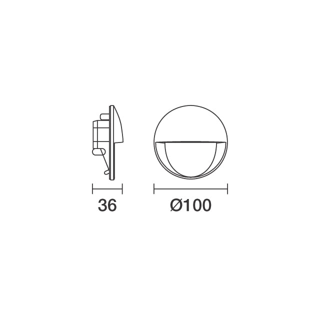 Medium: Ydre diameter Ø 100 mm, dybde 36 mm, 6,3W, 119lm