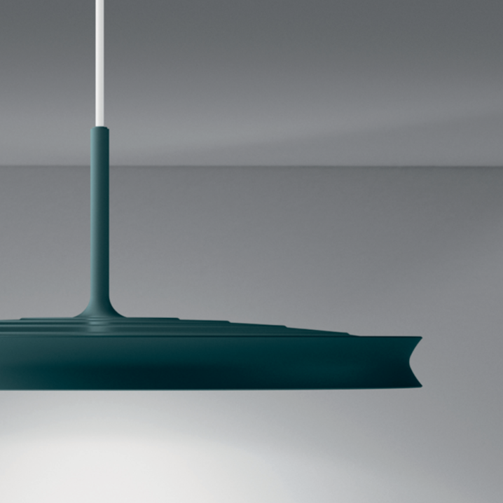 Yoyo-serien leveres i flere størrelser – Ø 225, Ø 350 og Ø 535 mm – og kan vælges i flere matte farver eller rå aluminium, så du nemt kan tilpasse udtrykket til din indretning. Vælg mellem opal diffusor for et blødt, diffust lys eller mikroprismatisk diffusor for mere præcis lysstyring med lav blænding (lav UGR).