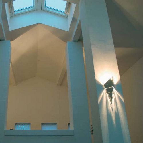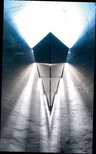 En smuk lille lampe som giver blødt lys op og markante stråler nedad.