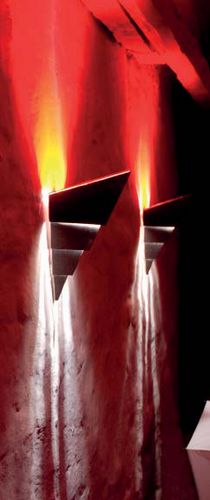 Som tilbehør kan købes farvefilter i blå eller rød for at få en anden farve lys opad. ( se billeder ) pris 245,- kr pr. stk.
