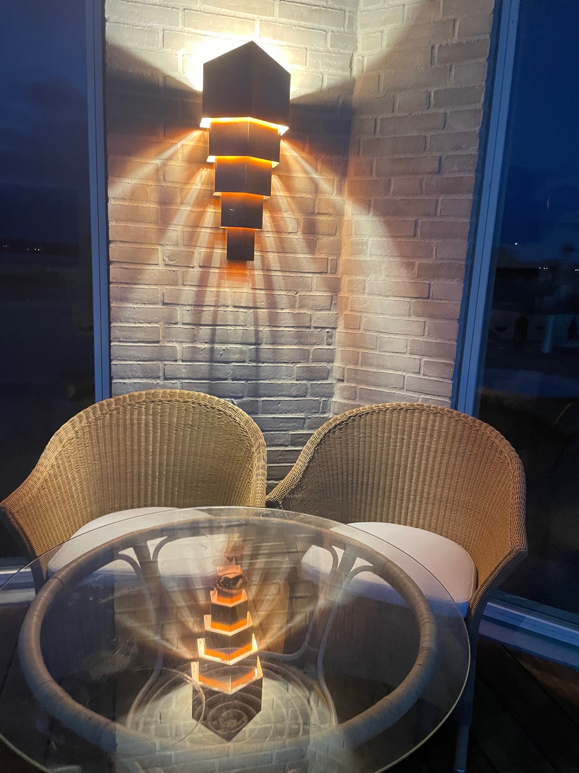 Finn August Kaerulff laver her en af sine stråleglas lamper, et smukt og elegant lys, der understreger husets flotte arkitektur.